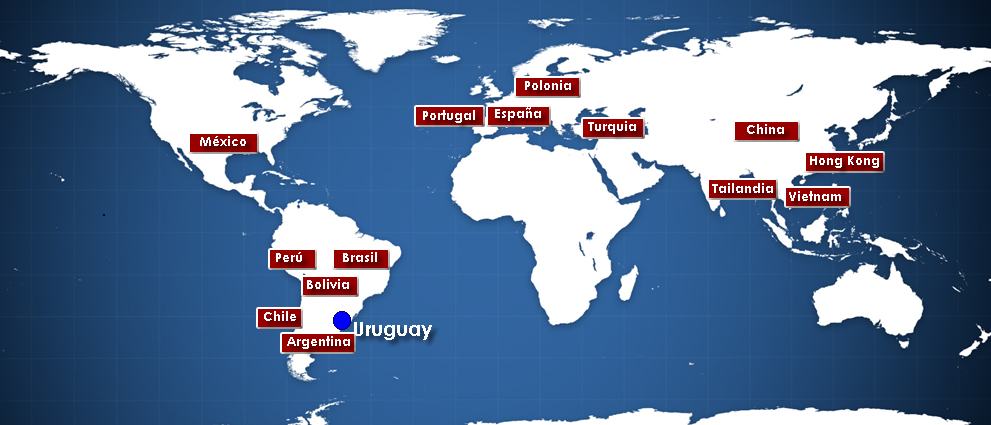 Peru, Brasil, Argentina, Bolivia, Chile, México, China, Polonia, Vietnam, Hong Kong, Turquía, España, Tailandia and Portugal.